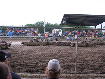 Rain. That's all I can say. It rained...and rained...and rained. It rained when the derby started Friday evening which was around 6:00 p.m. I think it finally quit about 10:00 p.m. that night. The mud was about 1/2 way up the wheels and cars couldn't get around very well. The first heat took 1 hour 45 minutes. Allen was in the second heat which still took around 1hour 30 min. They took top 4 cars to the finals. Just for making it to the finals you are guaranteed $500.00. He placed 5th! Once he was out the show was over ;(.